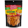 Packaging of Tasty Treat Barbeque Plantain Chips on a white background